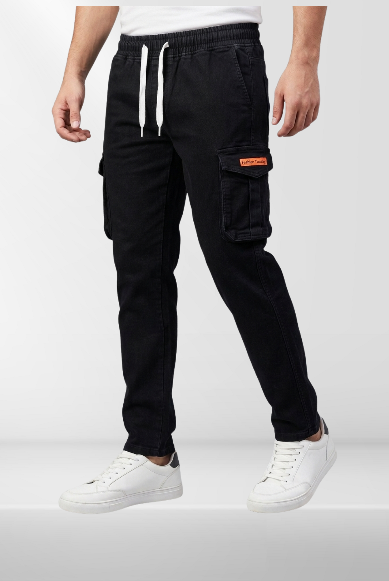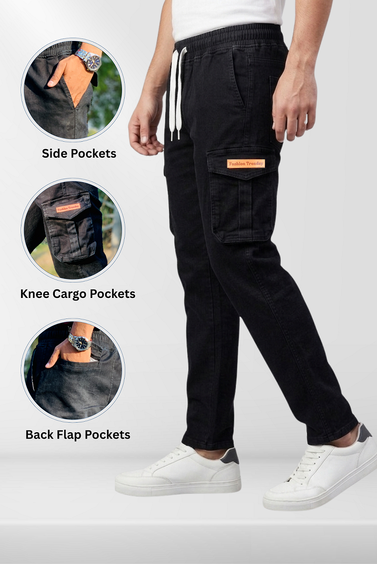 These Denim Cargo Trouser are made from a soft and durable Cotton and Lycra blend that offers all-day comfort and adjustable fit. Equipped with a total of six pockets, including front, back, and functional side cargo pockets. The elasticated waistband with a drawstring ensures a secure and adjustable fit. The light wash finish gives them a vintage feel, while the slim-fit design with tapered legs adds a modern touch.