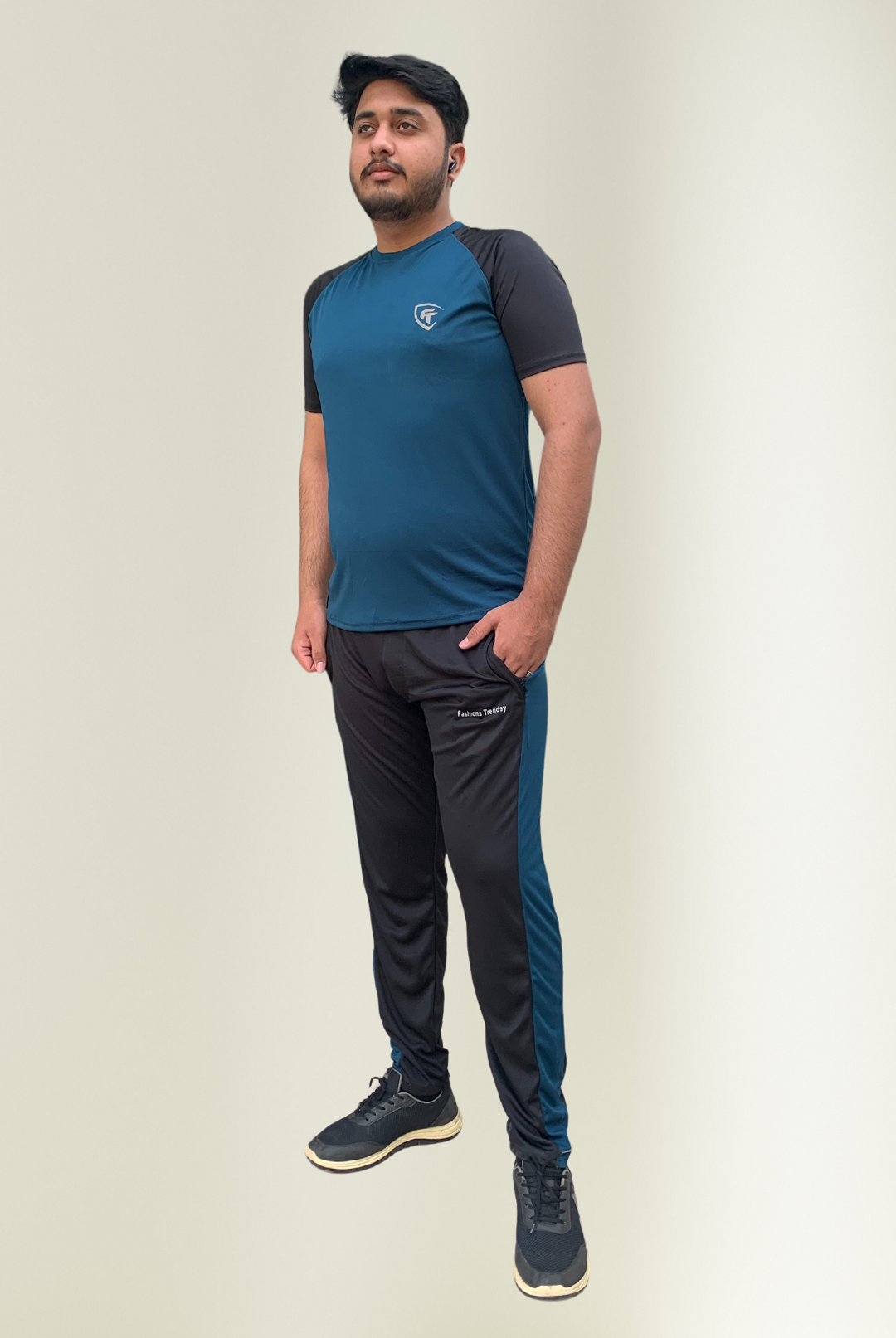 This Drifit Shirt and Trouser combination ensures maximum comfort and unrestricted movement from gym to street. The lightweight fabric keeps you cool and dry throughout your activities, making it your go-to outfit for any occasion. Featuring stretchable, friendly fabric with a reflector logo. Trouser with 2 side zipper pockets and an elasticated drawstring waistband.